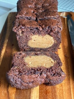 Peanut Butter Cream Cheese Filled Chocolate Banana Bread