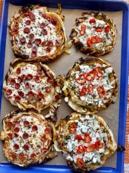 Cheesy Cabbage Steaks (Pizza + Mediterranean Style)