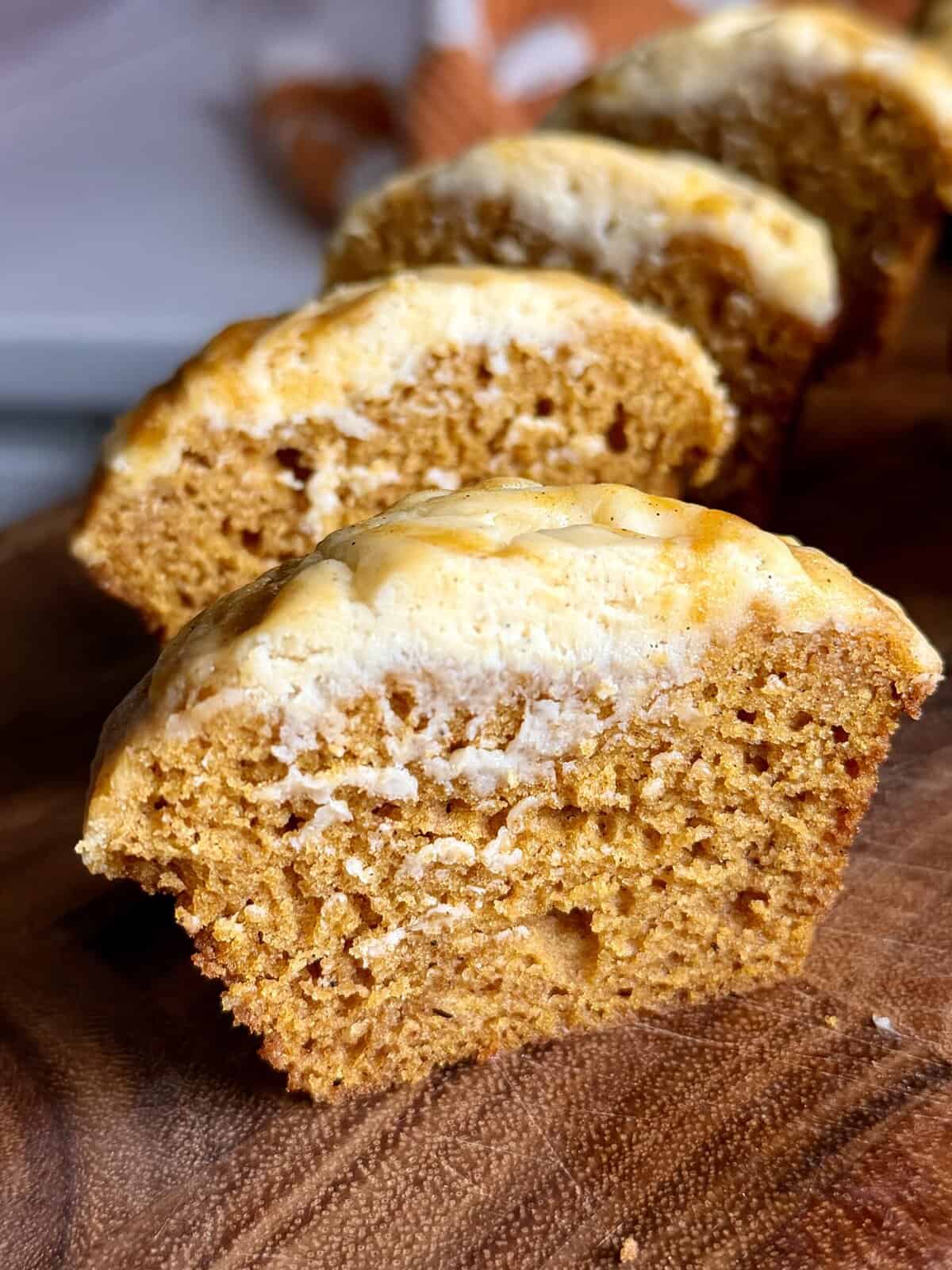 The warm spices of the pumpkin base are contrasted perfectly by the cool tang of the cream cheese topping. Making them an irresistibly decadent and deeply satisfying baked good perfect for any fall gathering.